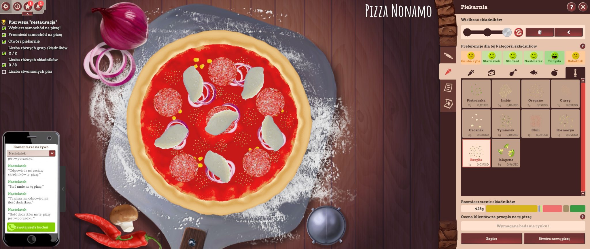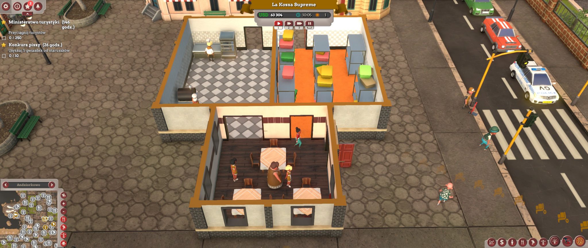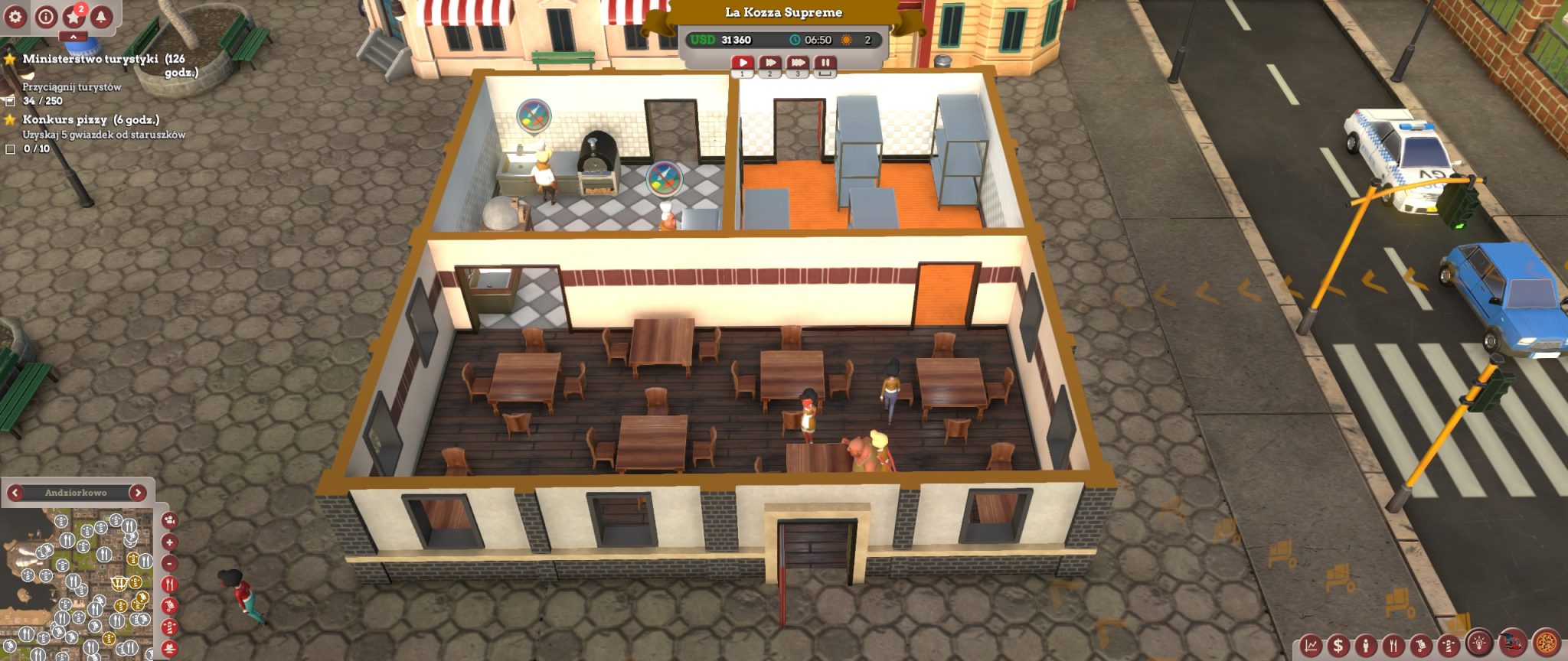 Dobra wiadomość dla wielbicieli serii – właściwie większość stałych elementów pozostała bez zmian. Dalej bardzo ważnym aspektem jest badanie rynku, grup i klas społecznych, tak aby dopasować pod nie jak najlepszy produkt. Musimy pamiętać też, że reklama dźwignią handlu, w grze ta teoria sprawdza się doskonale, bo trzeba zainwestować, aby ściągnąć klientów.  Tak, jak w poprzednich częściach możemy zagrać nieczysto i zatrudnić gangsterów, by zniszczyć naszą konkurencję, ale sami też musimy się przed nimi bronić! No i co najważniejsze… kreator tworzenia pizzy! Ten zawsze sprawiał mi mnóstwo frajdy, na przykład takie układanie mrówek na pizzy (sic!), kombinowanie i sprawdzanie, jakie składniki są najlepsze dla danej społeczności. Niby nic, a zawsze długo siedziałam przy tej części gry, teraz też.