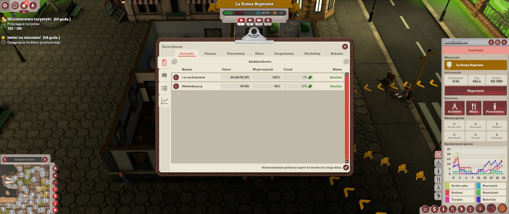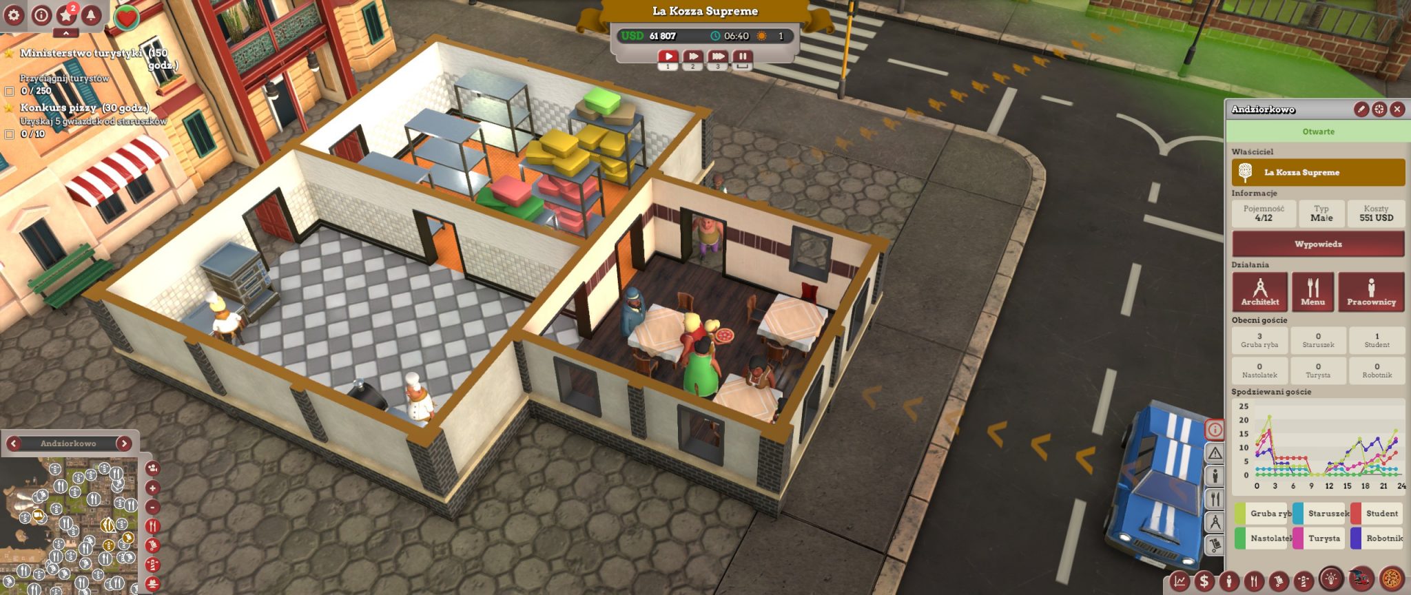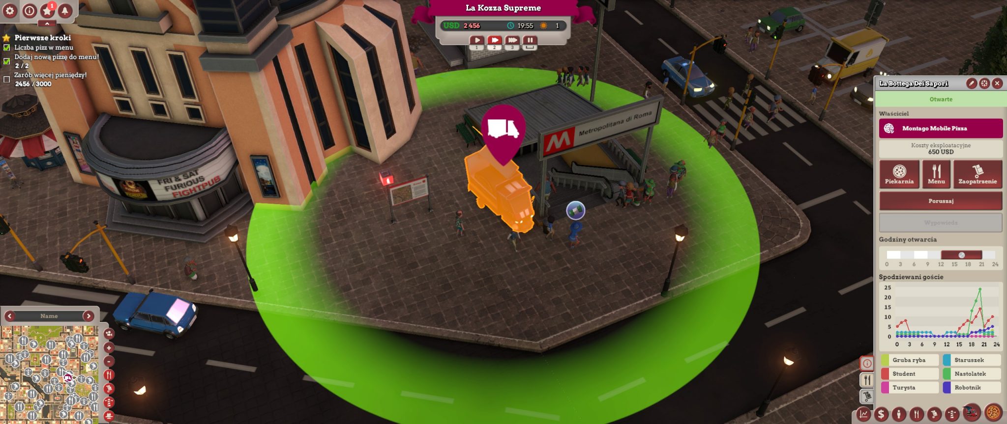 Dobra wiadomość dla wielbicieli serii – właściwie większość stałych elementów pozostała bez zmian. Dalej bardzo ważnym aspektem jest badanie rynku, grup i klas społecznych, tak aby dopasować pod nie jak najlepszy produkt. Musimy pamiętać też, że reklama dźwignią handlu, w grze ta teoria sprawdza się doskonale, bo trzeba zainwestować, aby ściągnąć klientów.  Tak, jak w poprzednich częściach możemy zagrać nieczysto i zatrudnić gangsterów, by zniszczyć naszą konkurencję, ale sami też musimy się przed nimi bronić! No i co najważniejsze… kreator tworzenia pizzy! Ten zawsze sprawiał mi mnóstwo frajdy, na przykład takie układanie mrówek na pizzy (sic!), kombinowanie i sprawdzanie, jakie składniki są najlepsze dla danej społeczności. Niby nic, a zawsze długo siedziałam przy tej części gry, teraz też.